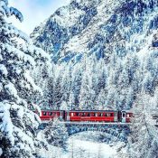 Bernina will delight those who love the mountains but do not want to climb for hours. You overcome, in mere hours, a height difference of 1,800 metres to see the turquoise alpine lakes and the famous Swiss cows. The final station is in the glamourous world-famous ski resort of St. Moritz. The Bernina Express travels the perfect route to witness the beauty of the Swiss Alps up close.